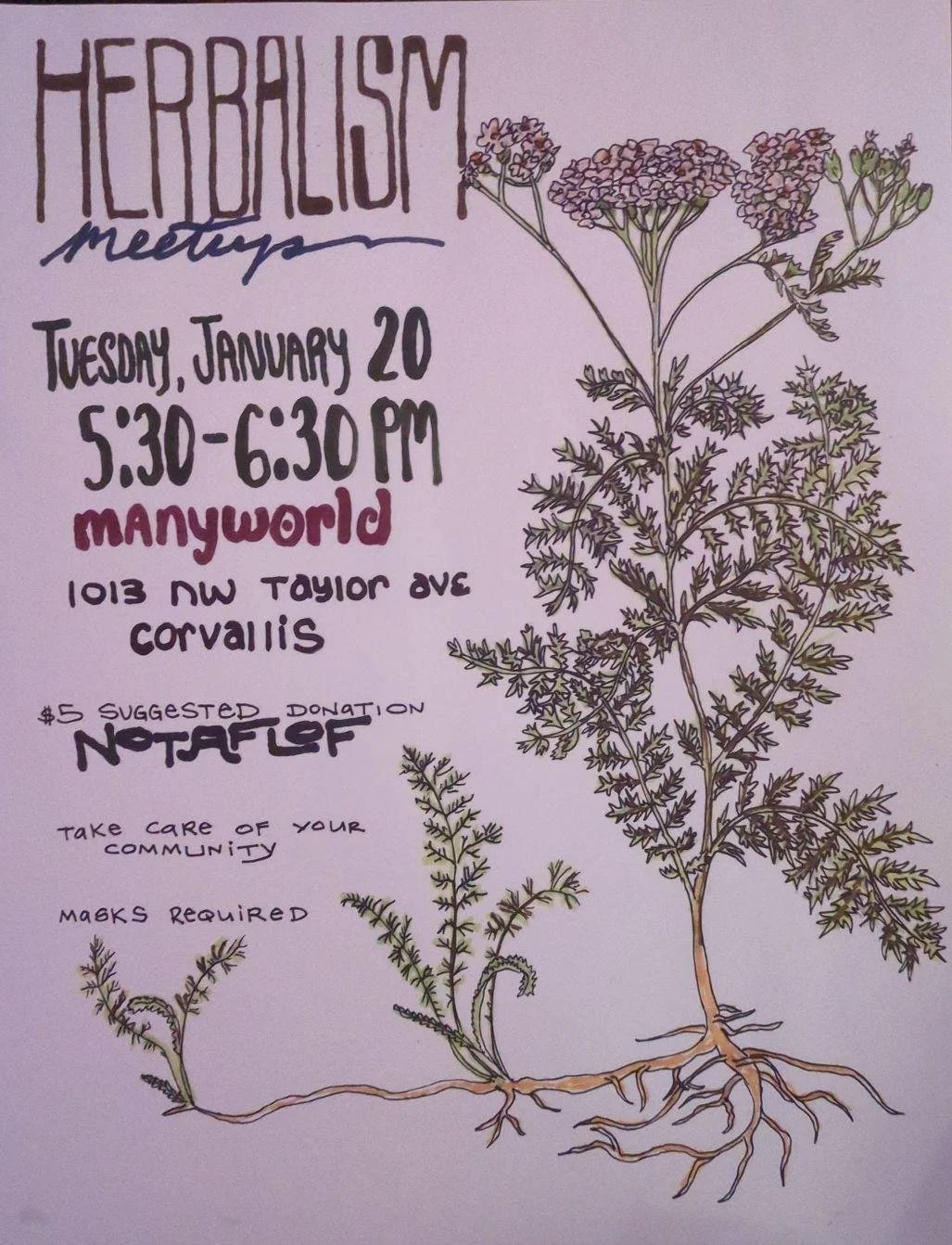 Tuesday, January 20th, 5:30-6:30pm. $5 suggested donation, no one turned away for lack of funds.