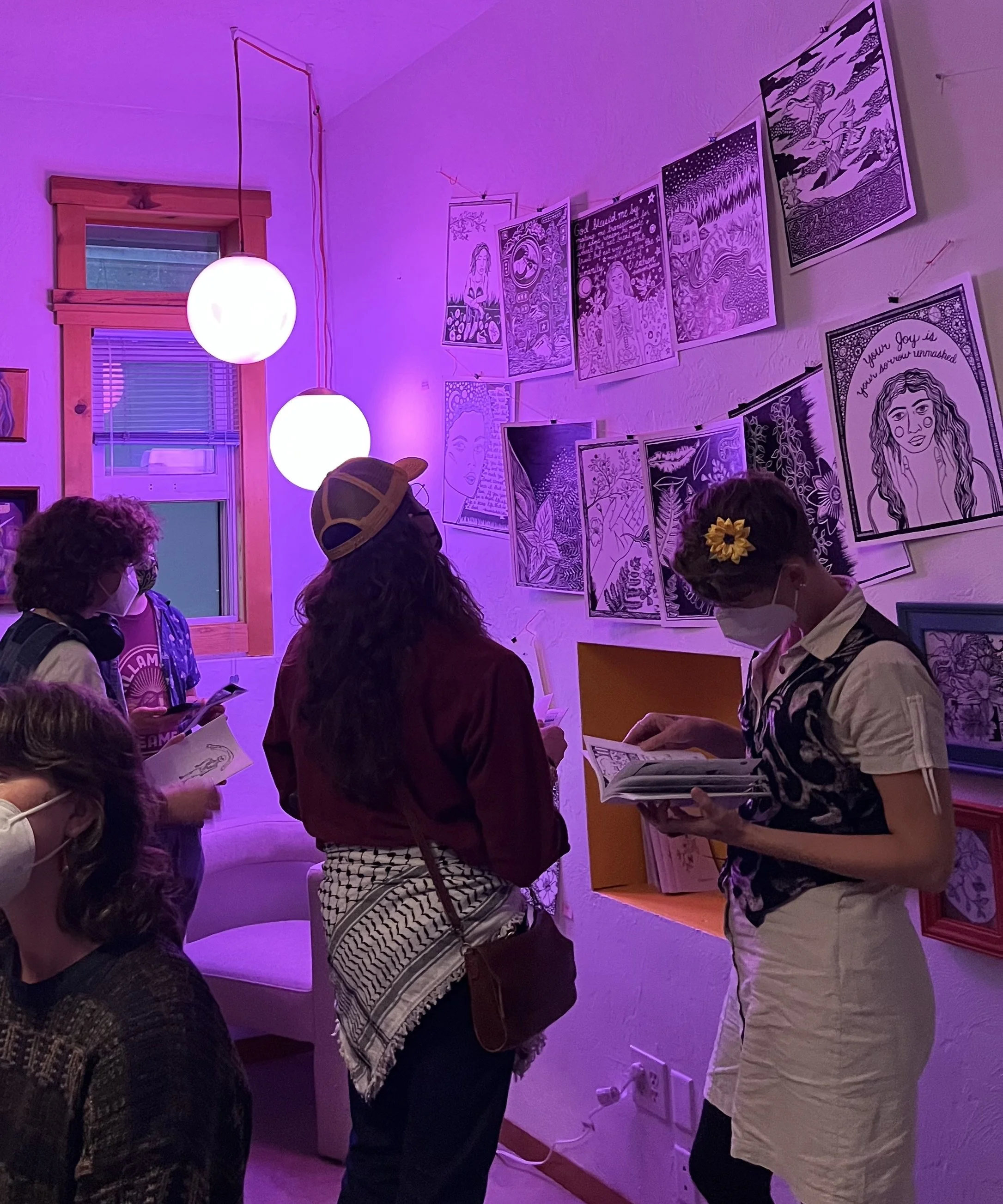 Our 300-square-foot gallery showcases rotating exhibitions by local artists, with a focus on emerging voices and work by BIPOC, LGBTQIA+, and other underrepresented creators. We’re especially interested in experimental, interdisciplinary, and unconventional art that doesn’t always fit traditional spaces.